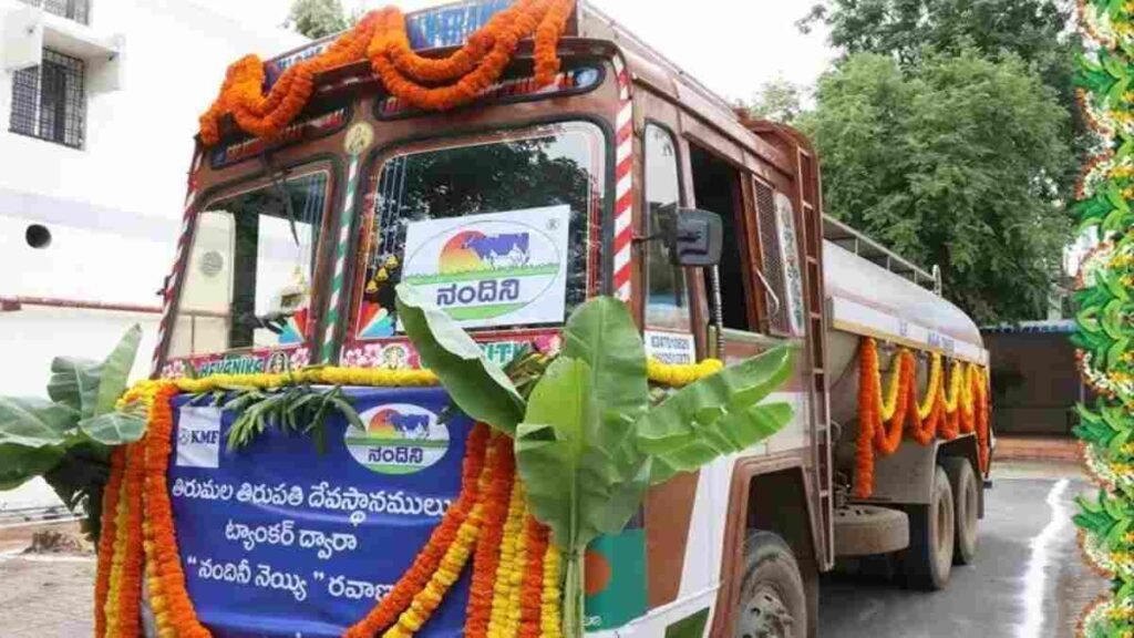 एक अधिकारी ने शनिवार को कहा कि कर्नाटक मिल्क फेडरेशन ने अपने वाहनों पर एक जियो-पोजिशनिंग सिस्टम लगाया है। ये तिरुपति मंदिर का प्रबंधन करने वाले तिरुमाला तिरुपति देवस्थानम (टीटीडी) को घी की आपूर्ति करते हैं। केएमएफ के प्रबंध निदेशक एम के जगदीश ने कहा कि टीटीडी द्वारा एक महीने पहले केएमएफ को टेंडर दिए जाने के बाद नंदिनी घी की आपूर्ति बहाल कर दी गई थी। अब केएमएफ को 350 टन घी की आपूर्ति का ठेका मिला है।